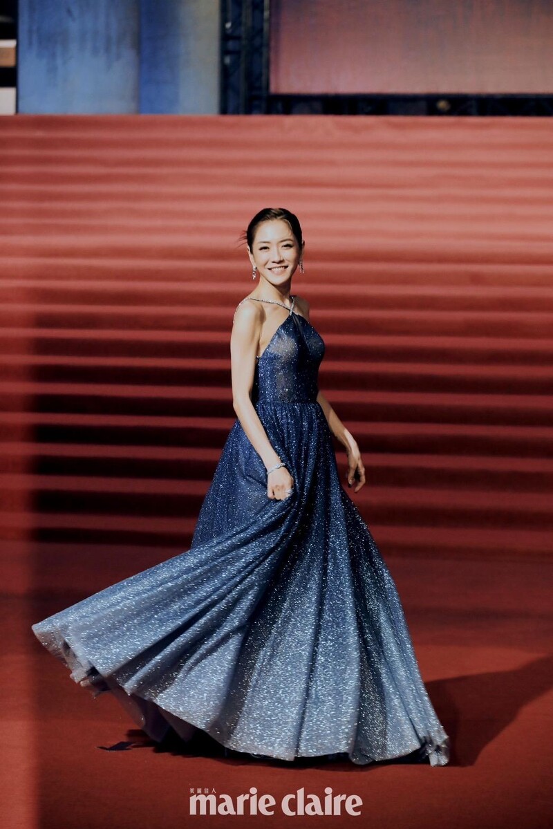 LinLi Boutique 林莉婚纱特别为杨千霈手工订製一袭星空渐层蓝水钻晚礼服,让她穿着踏上星光大道红毯,上头运用欧洲进口的蓝渐层星钻喷葱面料,打造银河般的闪亮层次,裸背设计一转身让人眼睛一亮!