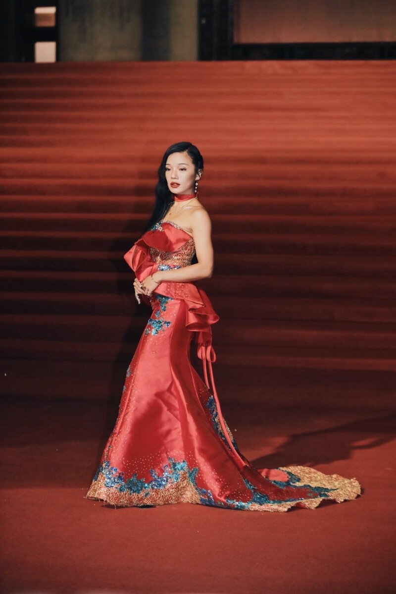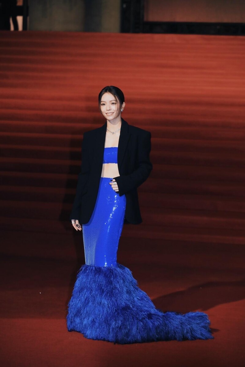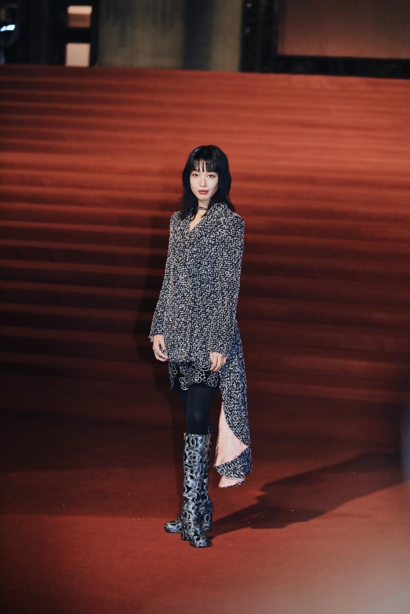 陈意涵在金马红毯上选择了另类的造型,她穿上Sacai的俏丽短洋装、内搭紧身皮裤,并用厚底靴收尾,搭配宝格丽珠宝首饰,在暗黑叛逆的风格里自带少女感。