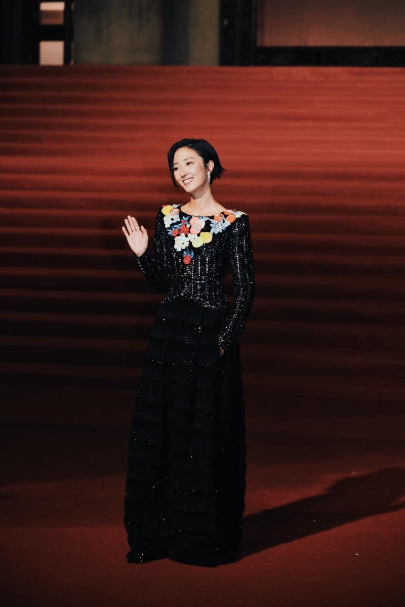 香奈儿宠儿桂纶镁今晚以Chanel 2023秋冬高订刺绣上衣与软呢裙装现身,一如既往地很有她不流于俗的个人特色,身前的鲜豔刺绣让整体更活泼灵动。
