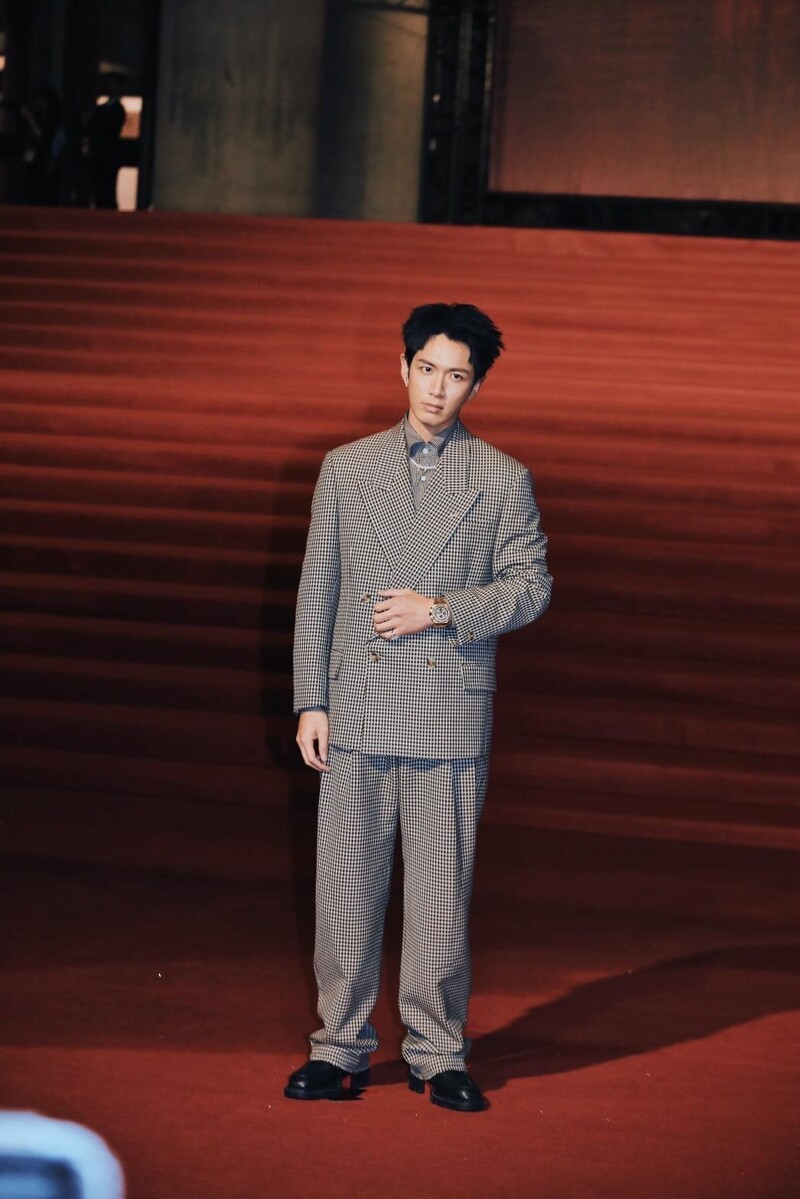 王柏杰以《疫起》入围本届最佳男主角,身上穿着沉稳内敛的BOSS双排扣西装,胸前Cartier胸针很是亮眼,皮鞋则是Christian Louboutin。