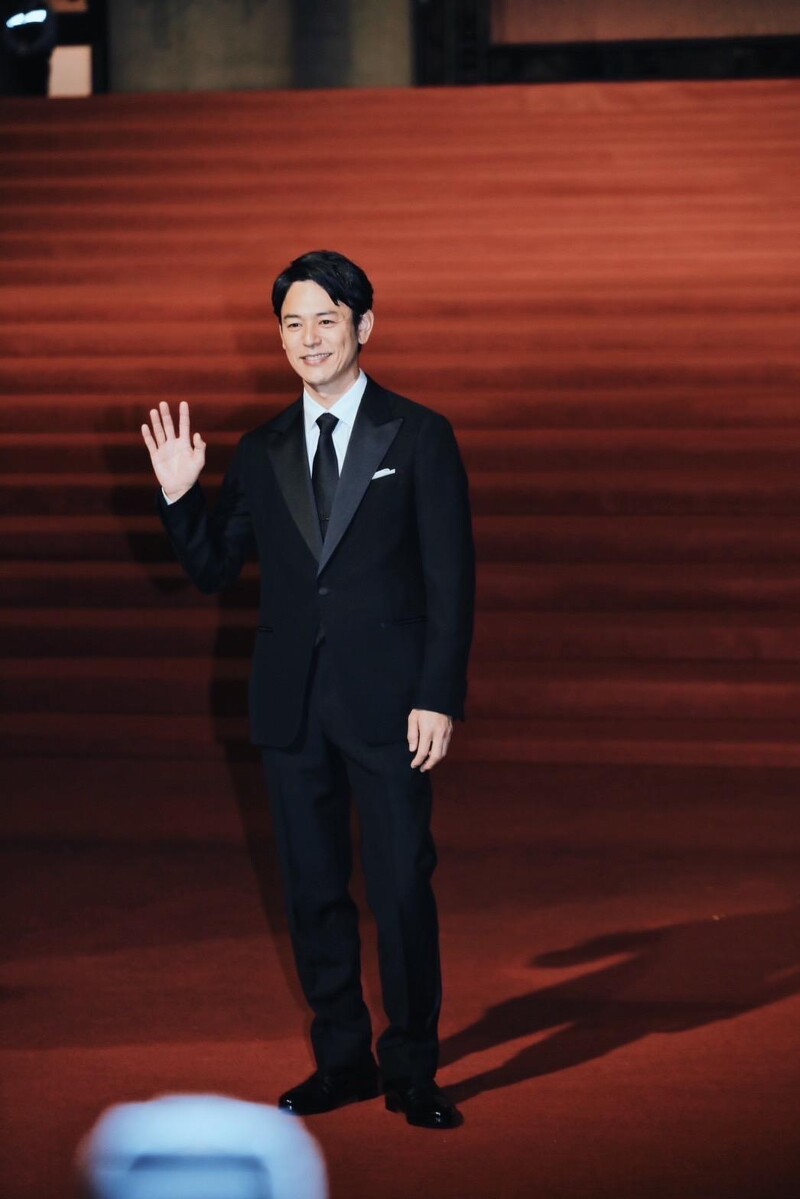 日本男神妻夫木聪压轴登场,或许是想让焦点聚焦在入围者们身上,选择了不抢眼的基础风黑西装,但依然是帅到顶了!