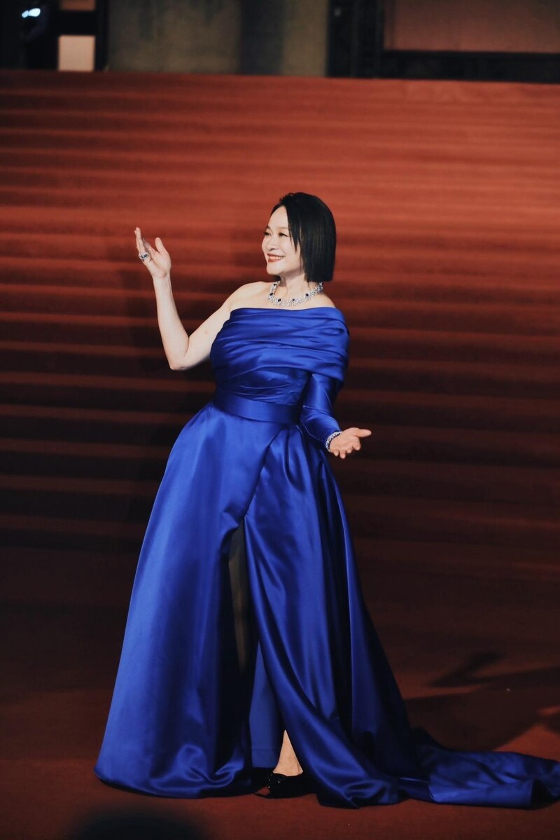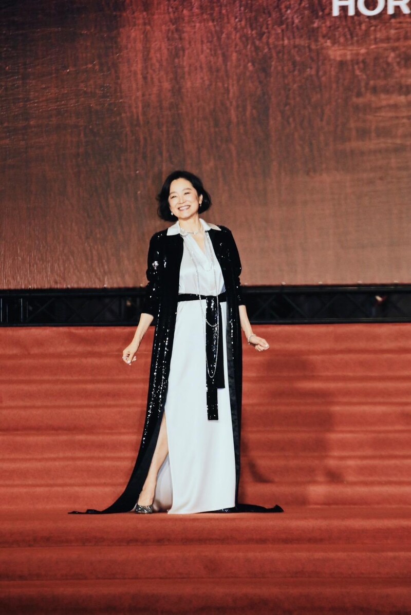 今年69岁的林青霞于本届金马获颁终身成就奖,她身穿黑白造型走上红毯,典雅而亮眼,红润好气色笑起来超美。