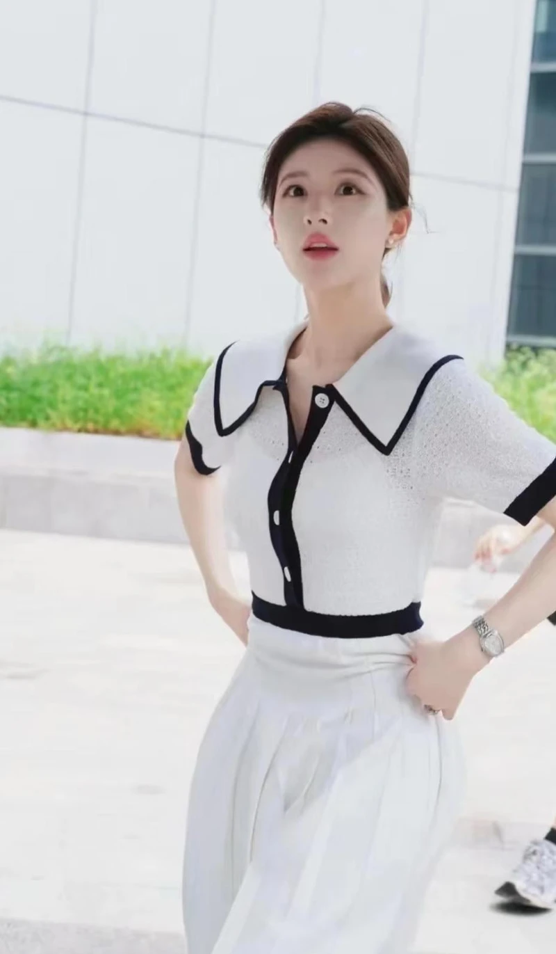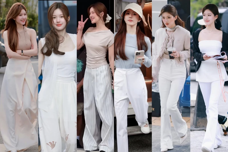 许妍多次示範的白色裤装穿搭,对于提升专业形象有很好的效果,尤其她多选择宽鬆或喇叭轮廓的裤管设计,内藏高跟鞋或是厚底鞋,还可以作为拉长比例的作弊神器。