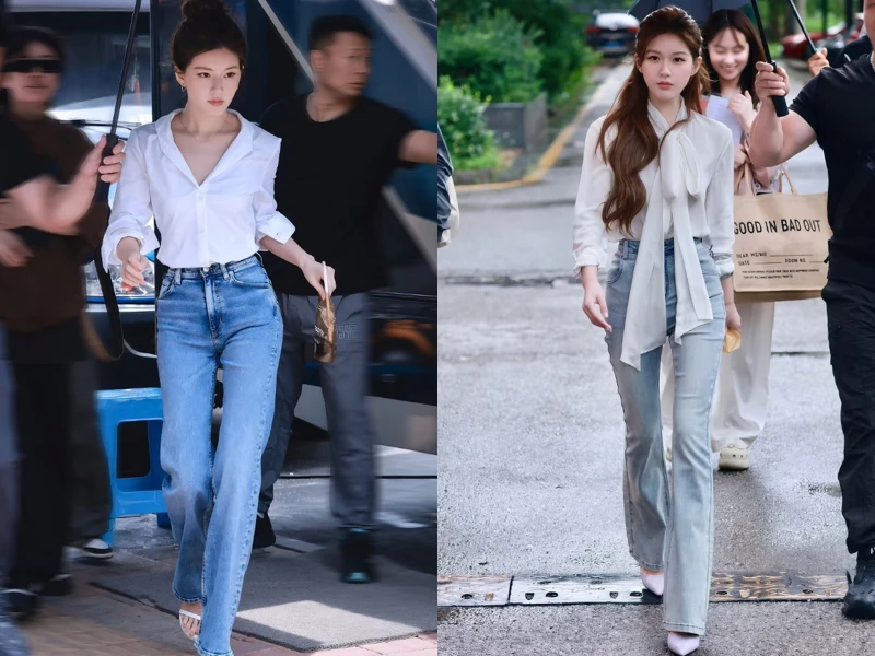 对于日常办公来说,白衬衫牛仔裤便足够保持时髦度,其中许妍的白衬衫造型更一举掀起讨论度,搭配高腰牛仔裤堪称鬆弛感天花板,就算没有明星的精緻身材与样貌,一般人照着公式走也不会出错!显高又显智性。