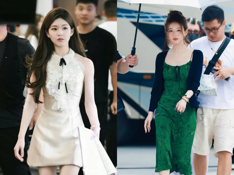 许妍的穿衣风格瞬息万变,换上这套Thom Browne滚边开襟的连衣裙,再搭配一双玛莉珍高跟鞋,完全就是文静又温柔的富家千金小姐,乖巧精緻的形象也很适合职场日常。